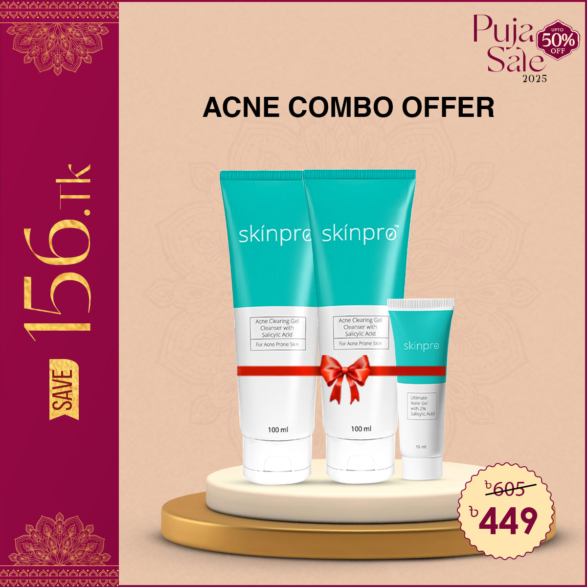 Acne Combo Offer: 2 Skinpro Acne Clearing Gel 100ml ,1 Ultimate Acne Gel 15ml