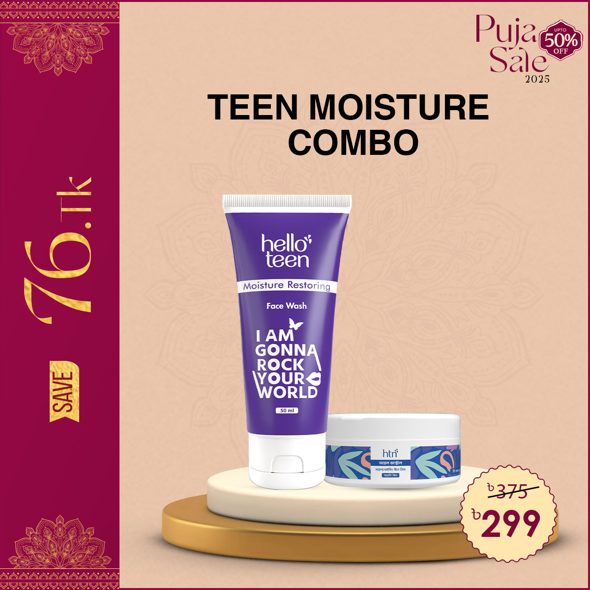 Hello Teen Moisture Restore Facewash 50ml + HTN Moisturizing Cream Hydra Boost 50gm Combo@ 299 Taka